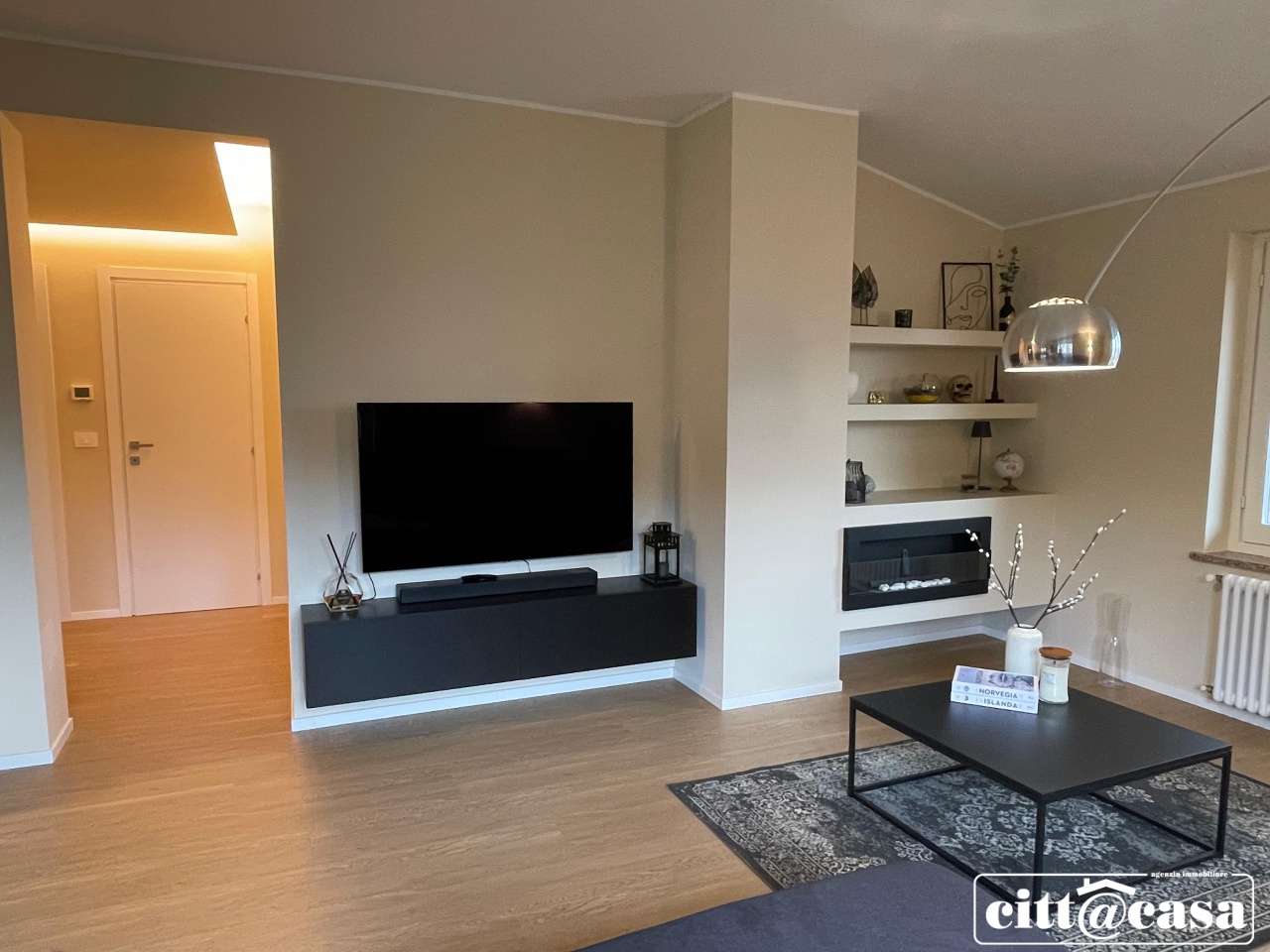 SAN RAFFAELE CIMENA, Frazione La Piana. In condominio di sole tre unità abitative proponiamo in vendita un elegante appartamento completamente ristrutturato nel 2025, situato in un contesto tranquillo e ben servito. L'immobile si sviluppa su una pianta razionale ed è composto da un ampio soggiorno con cucina a vista, perfetto per chi ama gli spazi aperti e luminosi.