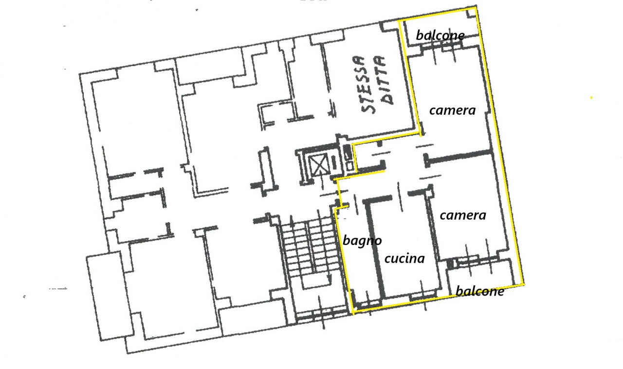 L'alloggio è composto da ingresso su disimpegno, ampia cucina abitabile, due camere da letto entrambe con accesso ai balconi, e un bagno finestrato.