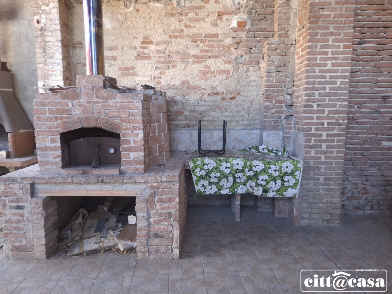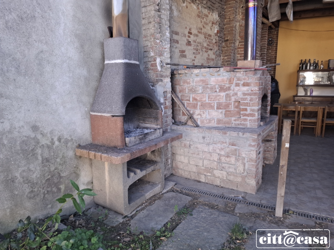Cortile attrezzato di area barbecue e forno a legna.
