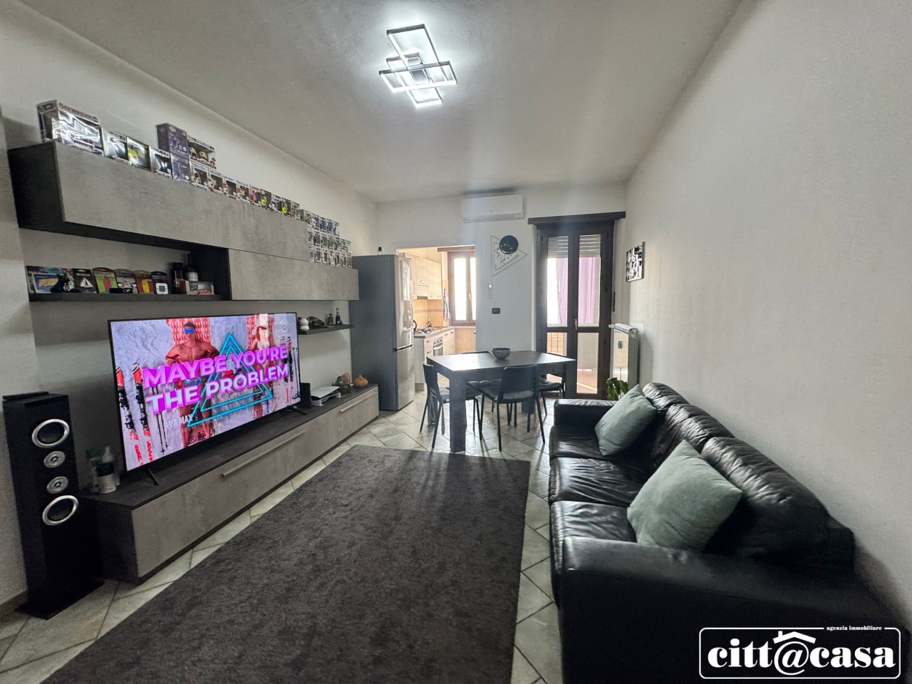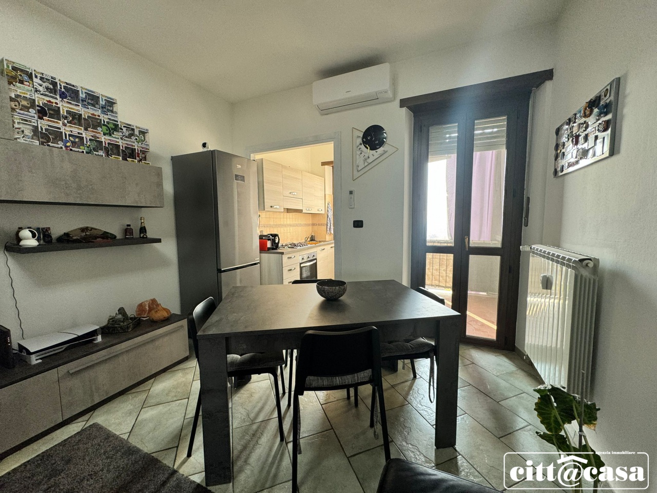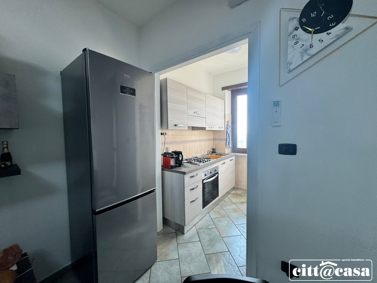L'immobile si apre su un generoso ingresso che conduce a un accogliente soggiorno con angolo cottura, perfetto per vivere e condividere momenti in famiglia.