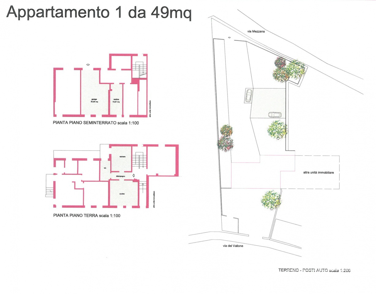 L'appartamento è composto da ingresso su luminoso soggiorno con cucina a vista, camera da letto, bagno, balcone, oltre a cantina, garage, posto auto e orto.