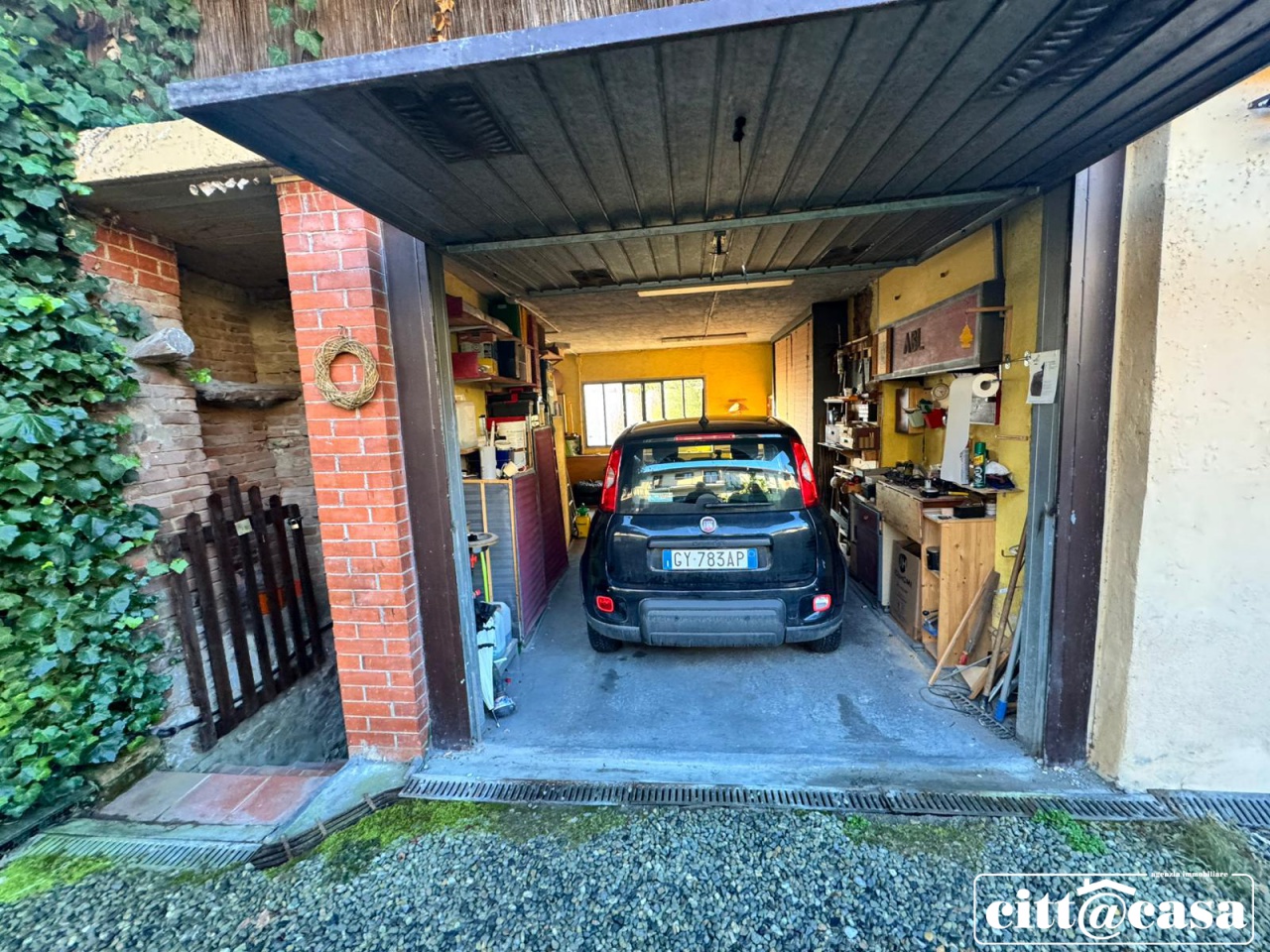 Completa l'immobile il garage doppio e una tettoia parzialmente ristrutturata dove al piano terra abbiamo un locale utilizzato come salotto/limonaia, mentre al primo piano abbiamo un locale di sgombero.